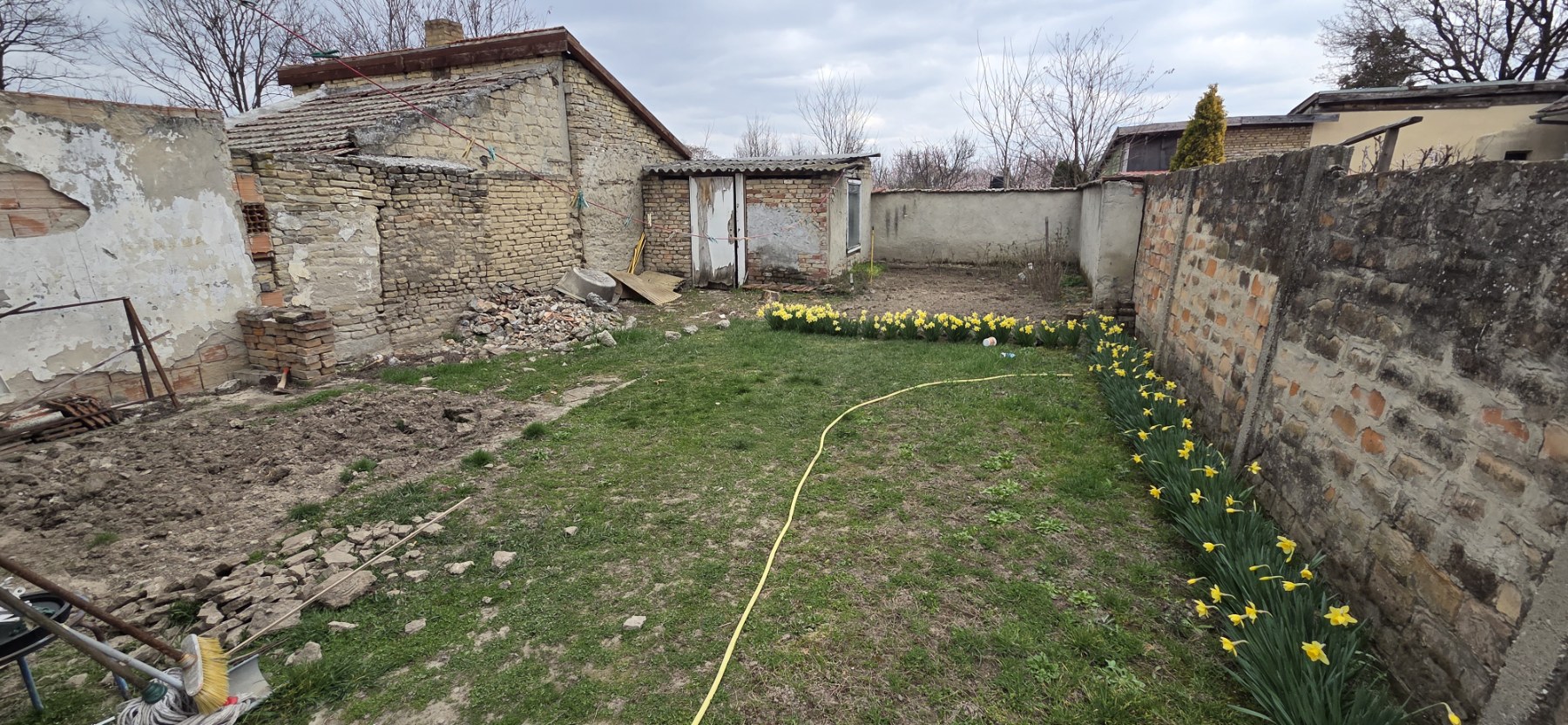 PVC windows and doors, laminate flooring and ceramic tiles on the floors. Heating is central, with a solid-fuel system (with the possibility of gas connection), three-phase electricity, city water and sewer system. There is a brick outbuilding in the yard.