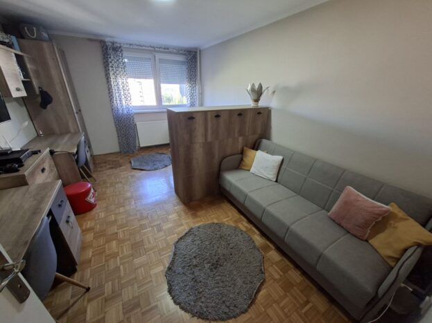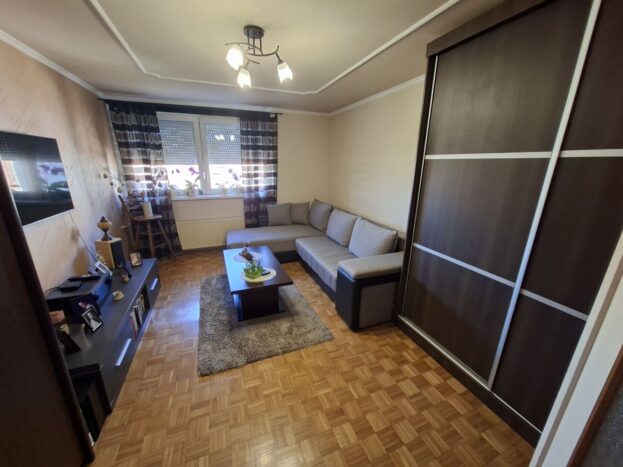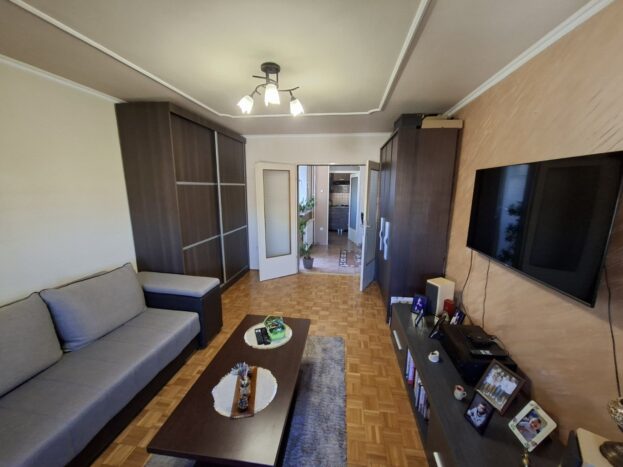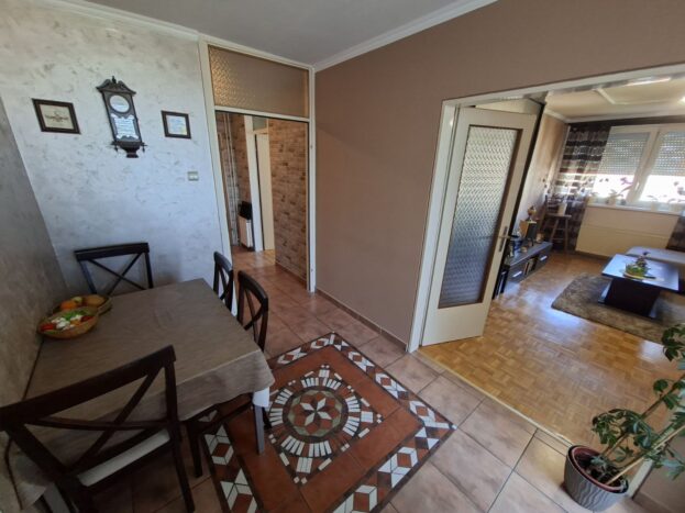 Subotica – Prozivka, a renovated, move-in-ready two-bedroom apartment is for sale, with a usable area of 62 m², on the ninth floor in a building with two elevators (9/10).